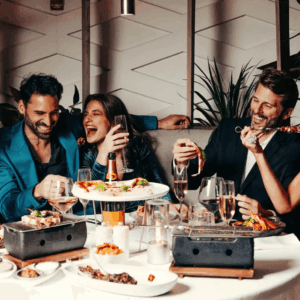 Whether it’s a romantic date, a milestone celebration, drinks with friends, or a family gathering, our rooftop at Poltu Quatu is ideal for every occasion. Kick back in one of the cozy booths and take in the scenic views while savoring our French-Mediterranean cuisine and signature cocktails. Witness some outlandish acts and join the CouCou flock, leaving your inhibitions at ground level.